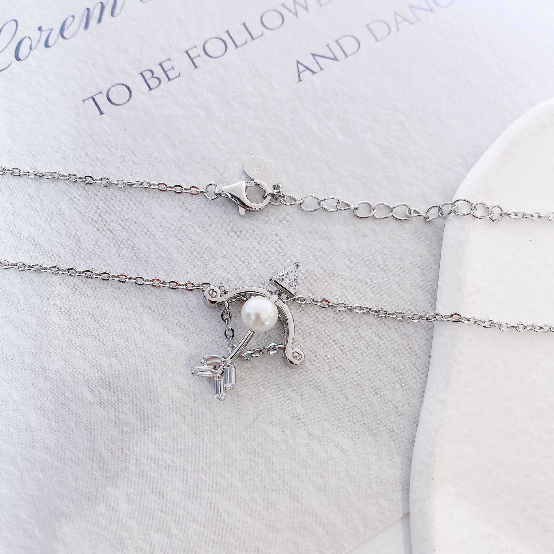 Cupid's Arrow with Natural Pearl and Zircon Pendant Silver Necklace for Women
