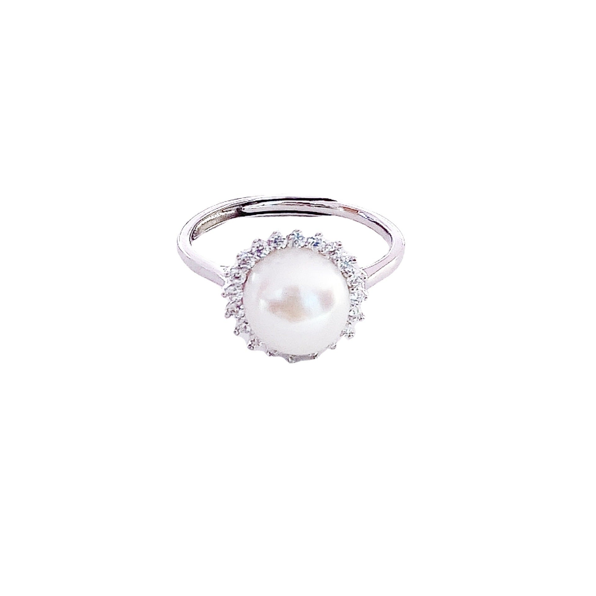 Natural Pearl Sun Soleste Halo Silver Ring for Women