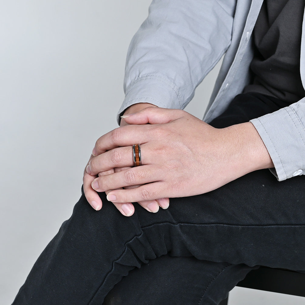 Meet a clean, modern ring crafted in durable tungsten steel. The Simple 4/6/8MM tungsten steel parquet wood leather ring from Planderful is designed for him and her, offering a subtle touch of luxury for everyday wear and special moments.