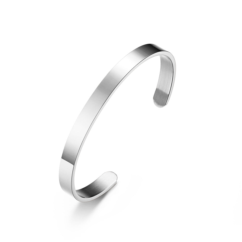Discover the perfect blend of style and individuality with our Simple Smooth Stainless Steel Open Bracelet. Crafted for modern men who appreciate both elegance and versatility, this adjustable size wholesale laser lettering bracelet is an essential addition to your jewelry collection.