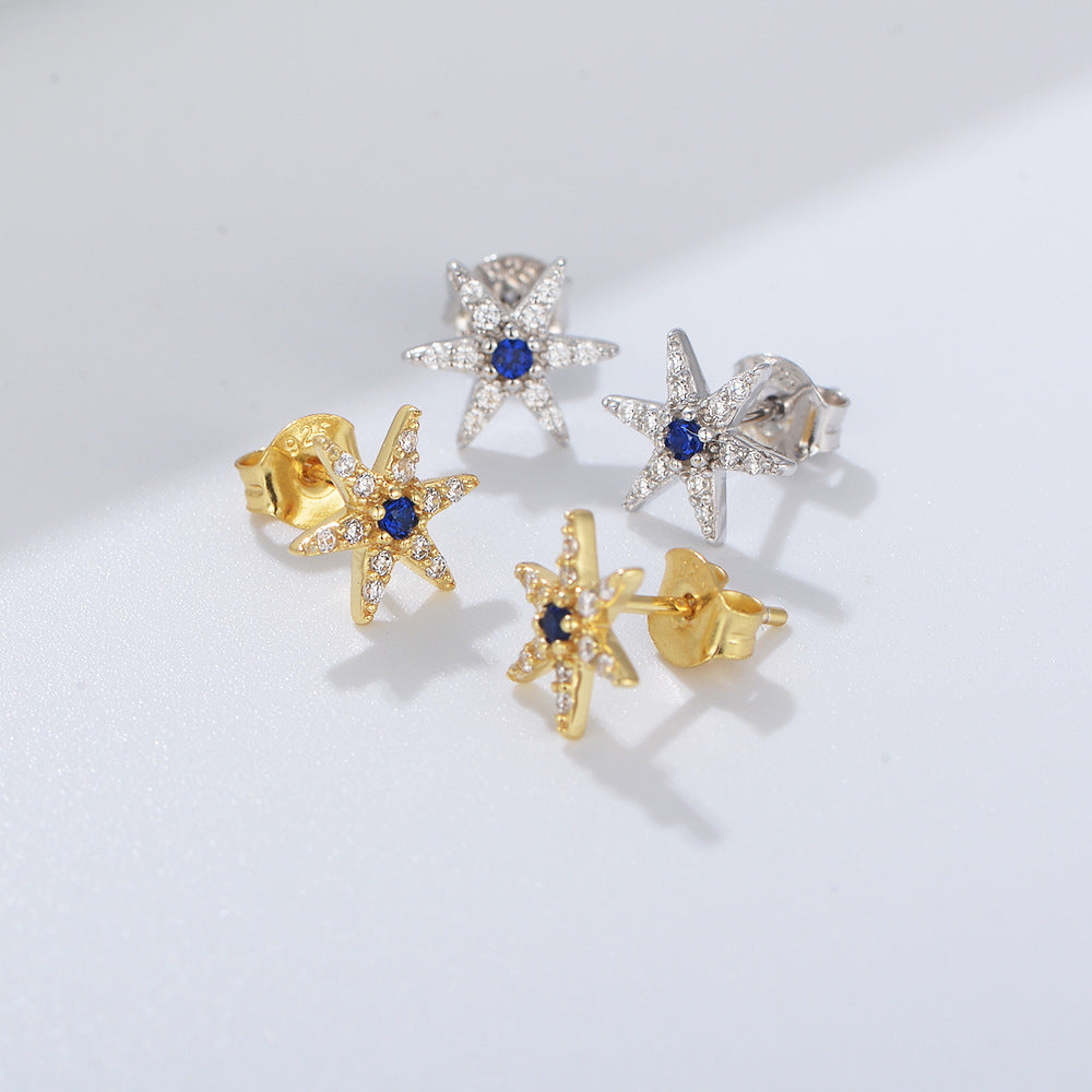 Zircon Six-pointed Star Silver Studs Earrings for Women