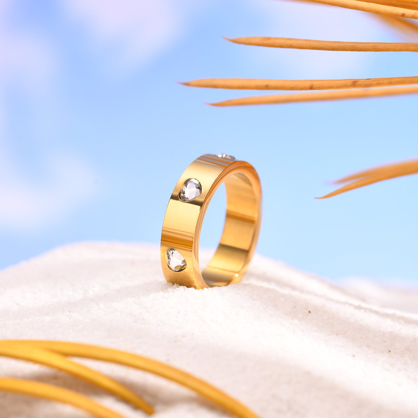 Jewelry Stainless Steel 6 Heart Shaped Zircon Ladies Ring