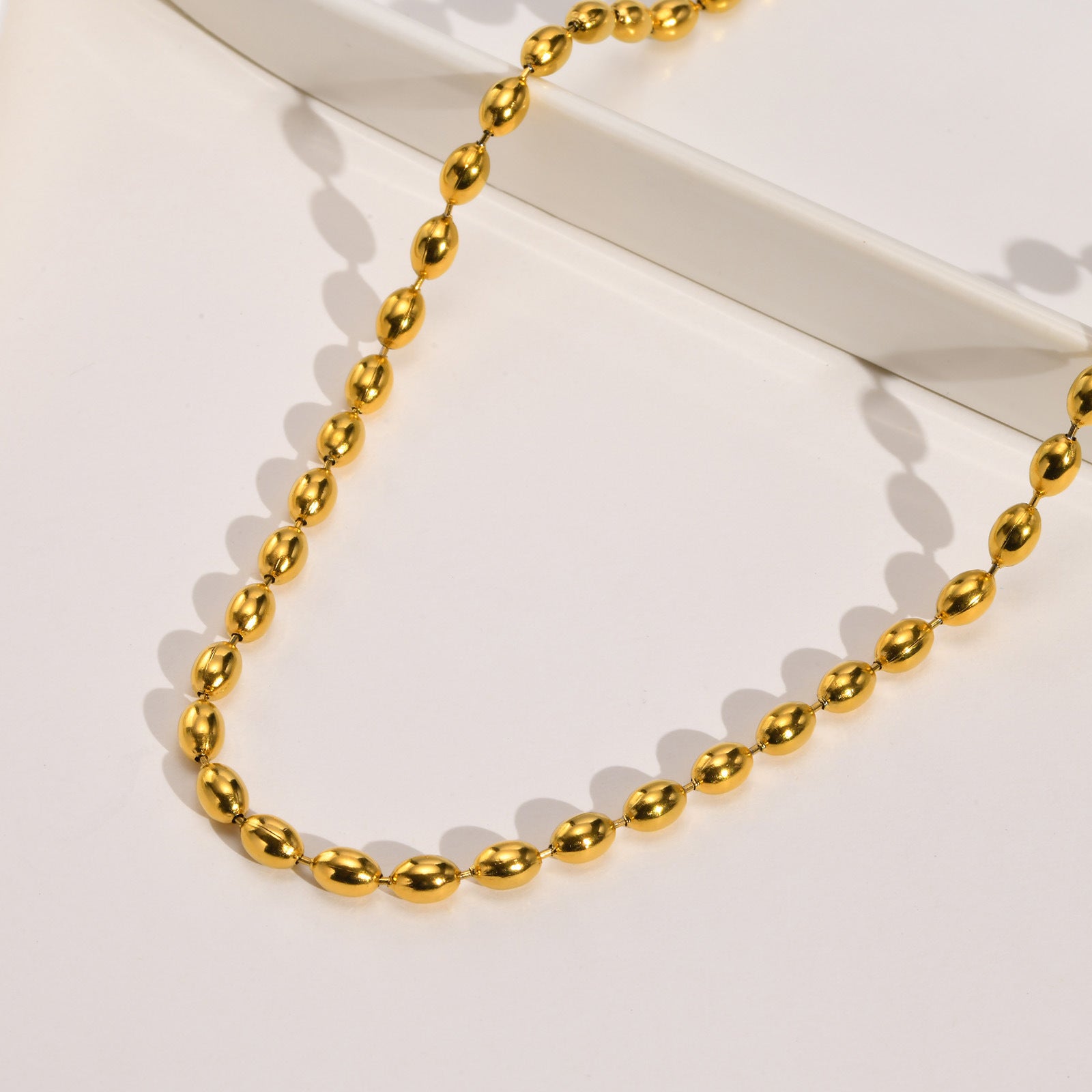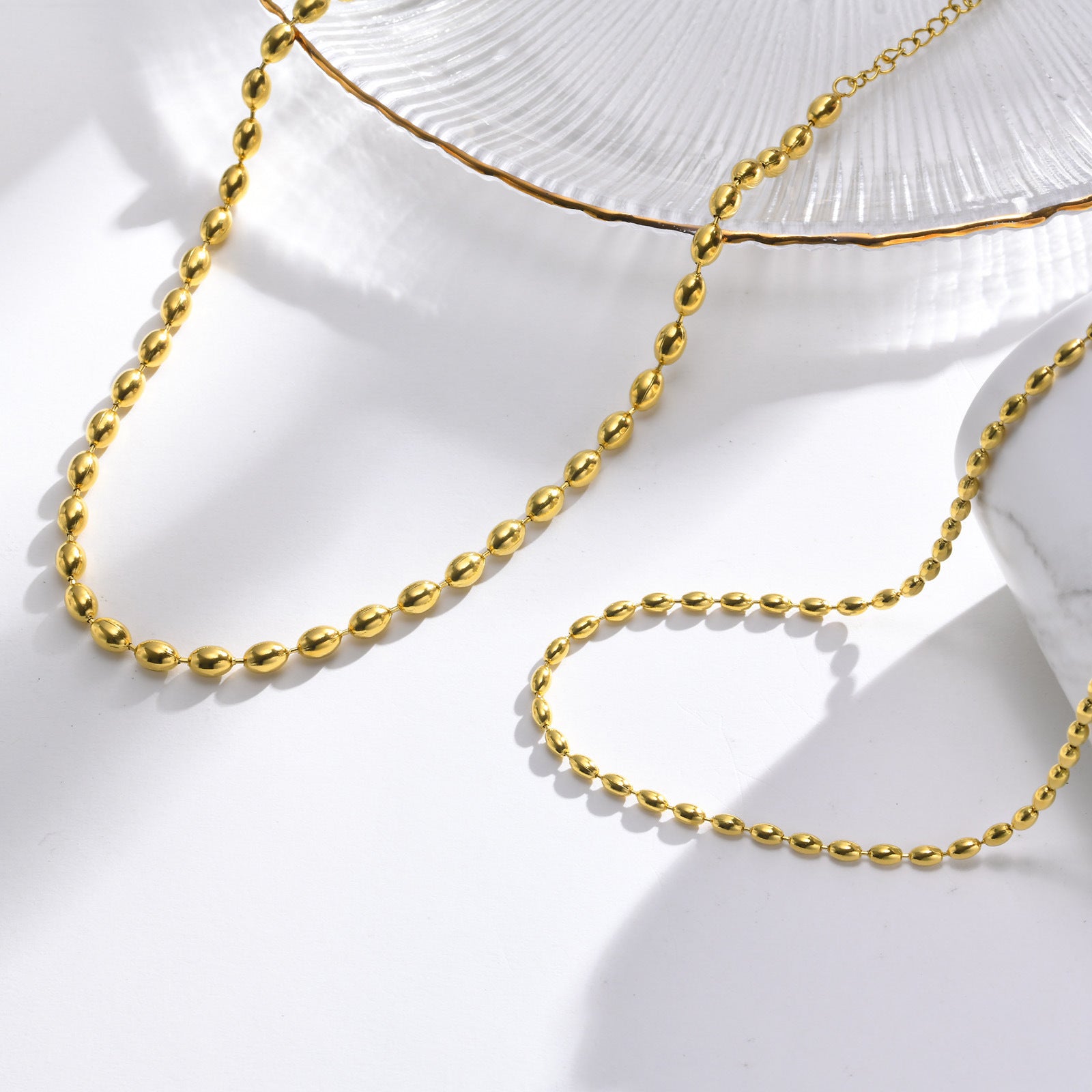 Introducing the Stainless Steel Bead Necklace Ladies, Rugby Bead Chain Simple Necklace Gold Accessories Wholesale for men and women—a versatile and stylish addition to your jewelry collection. This necklace is crafted from high-quality stainless steel, ensuring durability and a stunning shine that lasts. Perfect for both casual and formal occasions, this simple yet elegant piece can elevate any outfit.