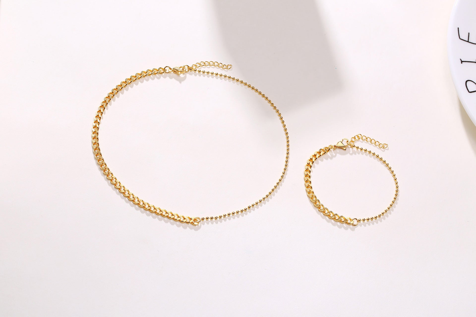 Don't miss out on this versatile and stylish Stainless Steel Grinding Chain Bead Chain Necklace Bracelet 18K Gold Girls Jewelry Ins Titanium Steel European and American Ins Necklace Bracelet Set. Add it to your cart today and shine bright wherever you go!