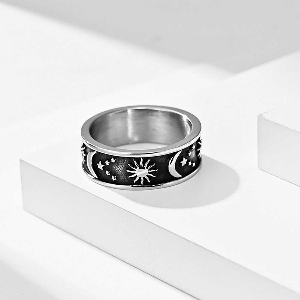 Crafted for daily wear, the titanium steel build offers durability and a lightweight feel that stands up to everyday life. The celestial design adds a touch of personality without overpowering the rest of your outfit, making it easy to pair with both casual and smart-casual looks. As a couple ring, it serves as a stylish, meaningful accessory for men and their partners to share and enjoy together.