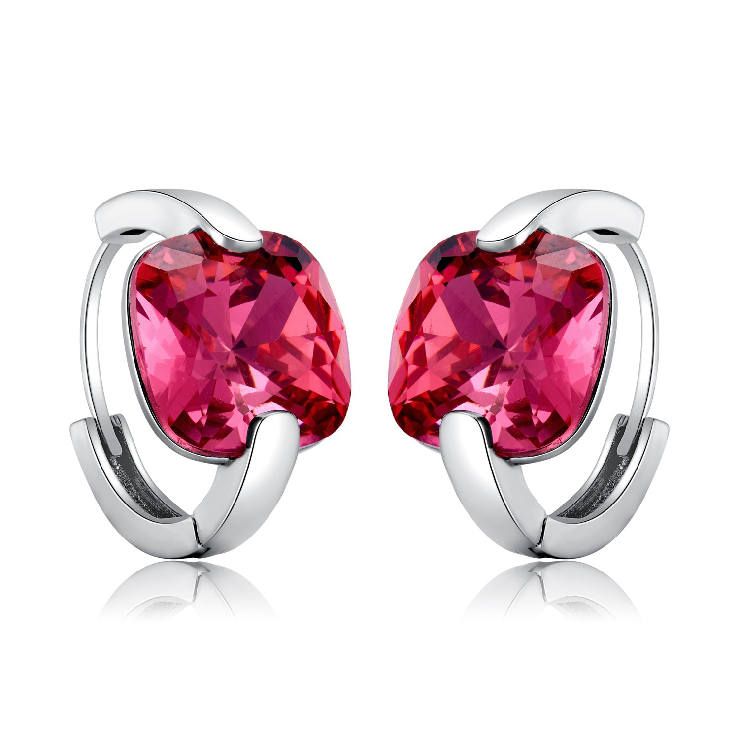 These Square Red Zircon Silver Hoop Earrings make a fashion statement you won't want to pass up. Crafted from sterling silver with a square red zircon center, these earrings are sure to turn heads. Perfect for any occasion, they are the perfect choice for a sophisticated yet eye-catching look.