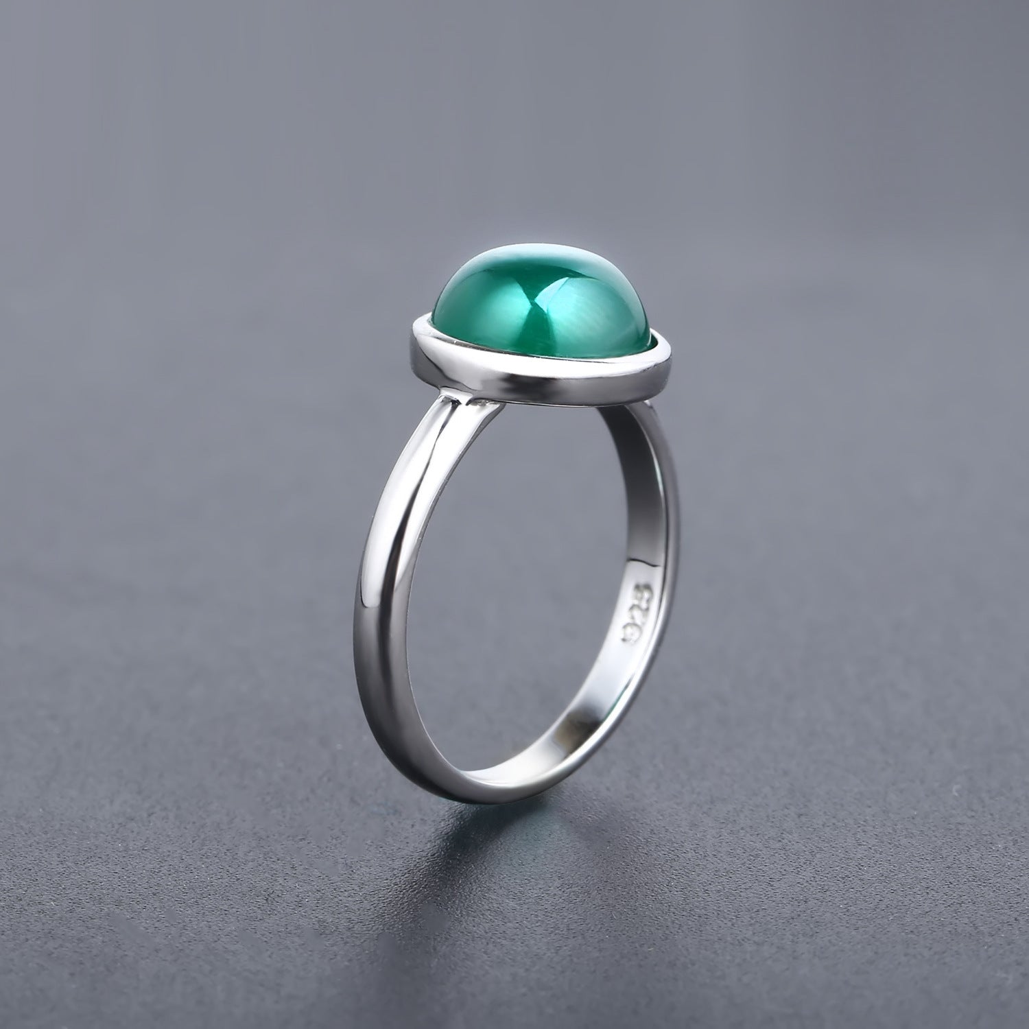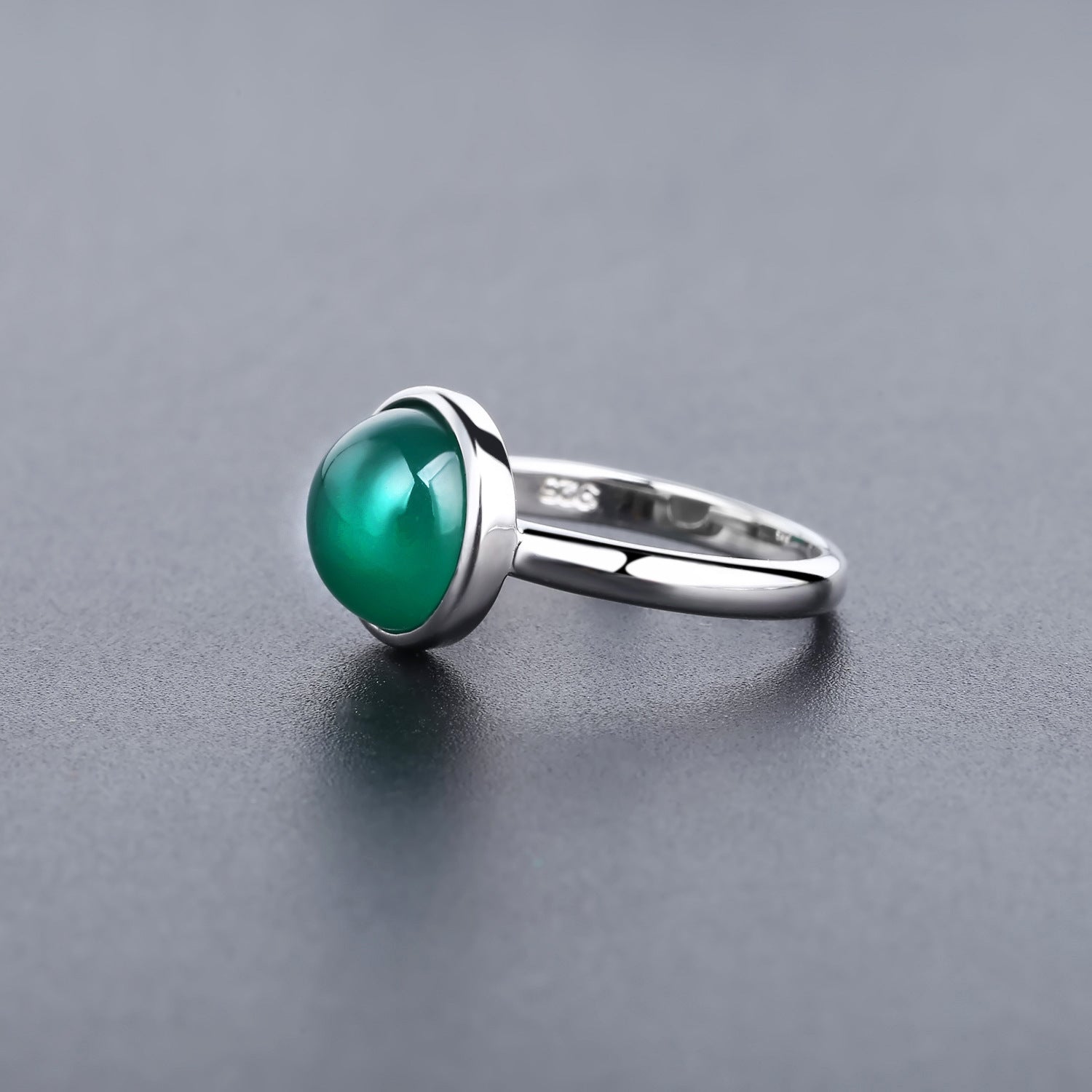 European Green Agate Solitaire Round Shape Silver Ring for Women