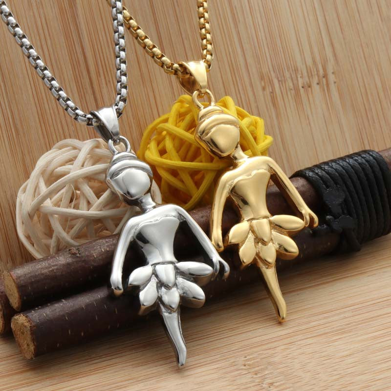 Punk Dance Titanium Steel Ballet Girl Pendant Necklace - Retro Trendy Stainless Steel Design