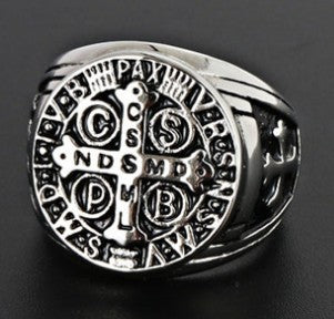 Men's Titanium Steel Punk Cross Ring - Bold Retro Design, Sizes 7-13 Available