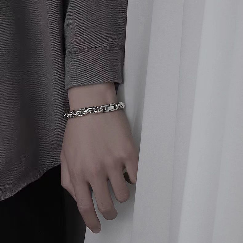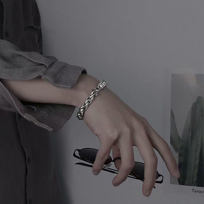 The Twist chain bracelet offers a distinctive, masculine silhouette that instantly elevates casual looks and anchors more refined outfits alike. Its thick, twist-link design delivers a bold presence, while the bamboo joint detailing adds textural interest and a touch of natural-inspired charm. Crafted in titanium steel, this piece resists wear-and-tear and resists fading, so its vivid shine stays true wear after wear.