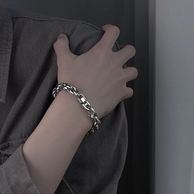 Planderful Jewelry Twist Chain Mens Titanium Steel Bracelet Thick Non Fade Everyday Genie Collection