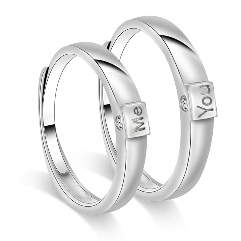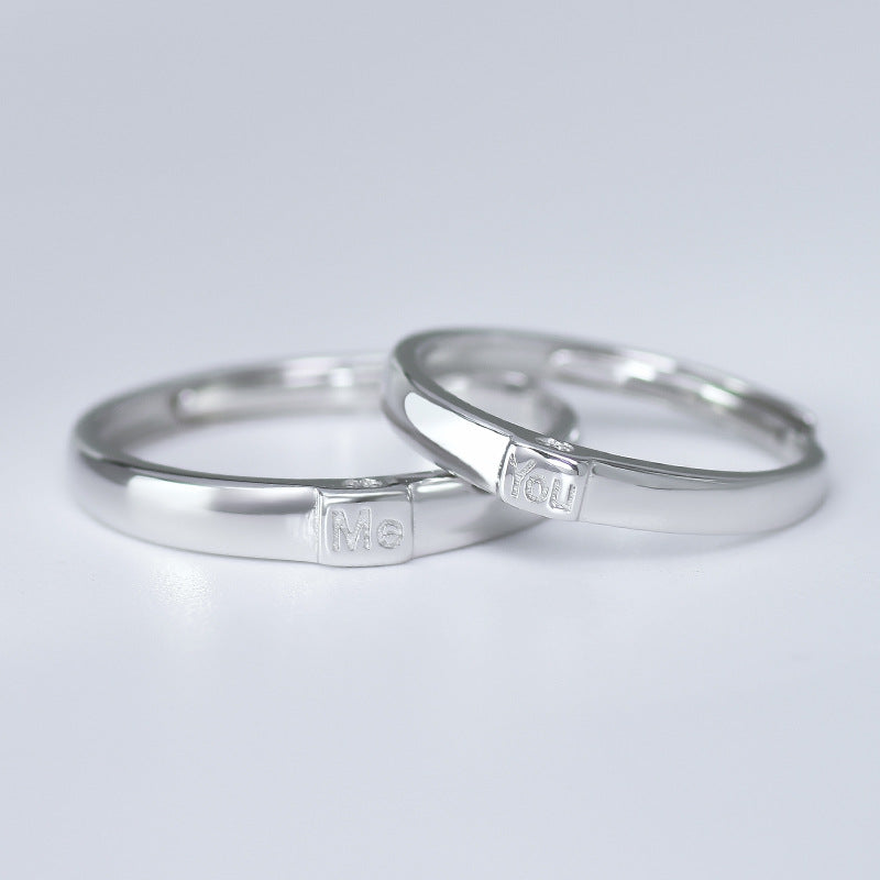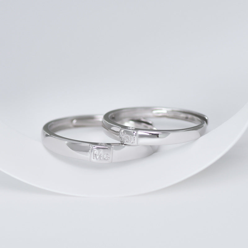 This beautiful silver couple ring is adjustable and features the elegant "You" and "Me" lettering. The adjustable opening ensures a snug fit for any finger size. With its timeless design, it's a perfect way to express your love and commitment.
