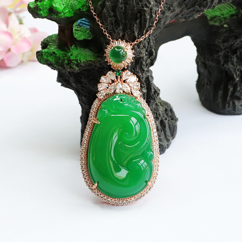 Chalcedony Fortune's Favor Necklace with Zircon Rose Gold Pendant