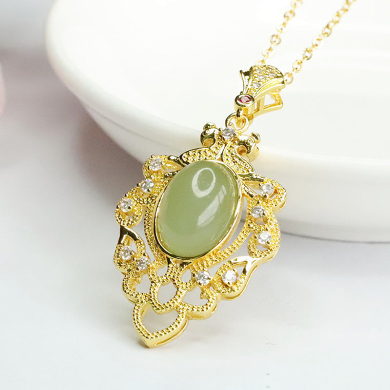 Elevate your style with our Fortune's Favor collection, where each piece is meticulously designed to bring you luck and prosperity. The intricate details of the hollow leaf pendant showcase the natural beauty of Hetian Jade, creating a mesmerizing accessory that is sure to turn heads.
