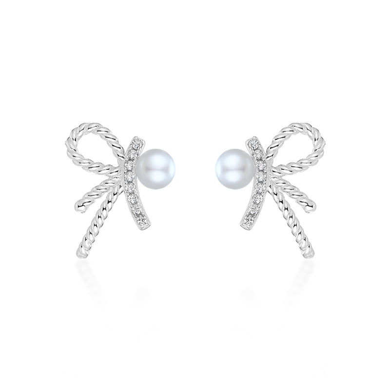 Zircon Bow with Pearl Silver Studs Earrings for Women
