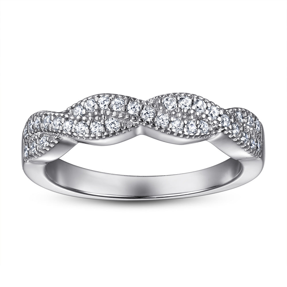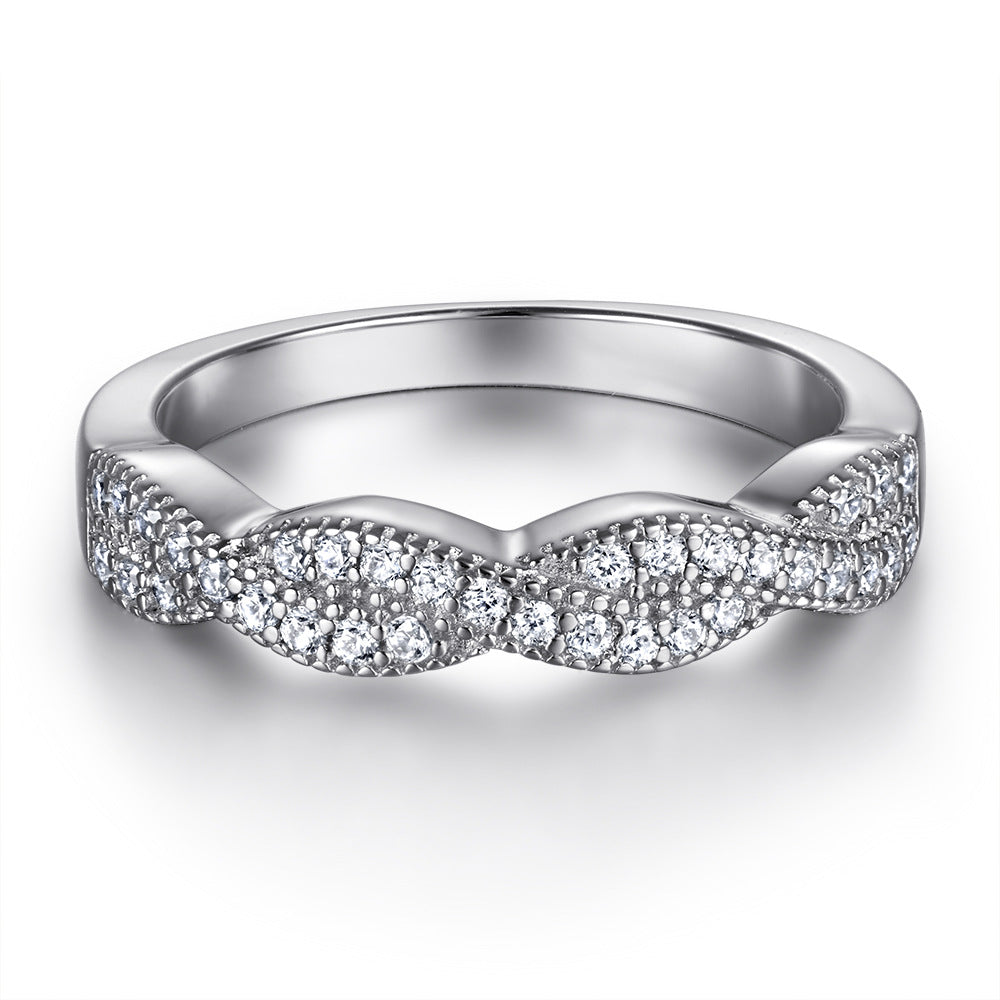 This Zircon Interwoven Line Silver Ring is crafted with sparkly Zircon for a timeless and sophisticated look. delicate interwoven design with luminous Zircon creating a unique and eye-catching design. Perfect for any occasion.