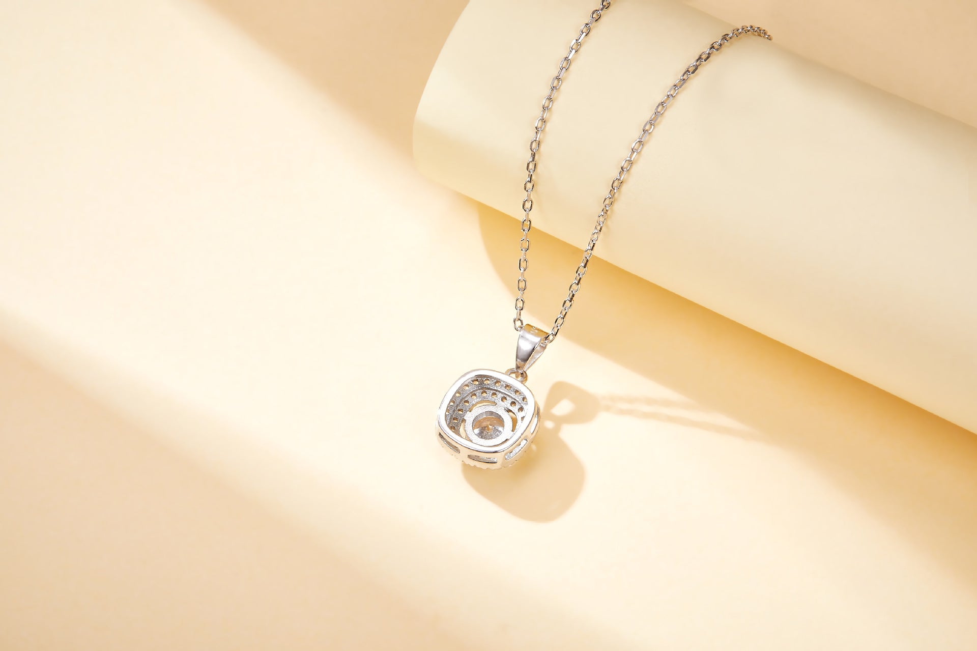 Arc Square Round Zircon Soleste Halo Pendant Silver Necklace for Women