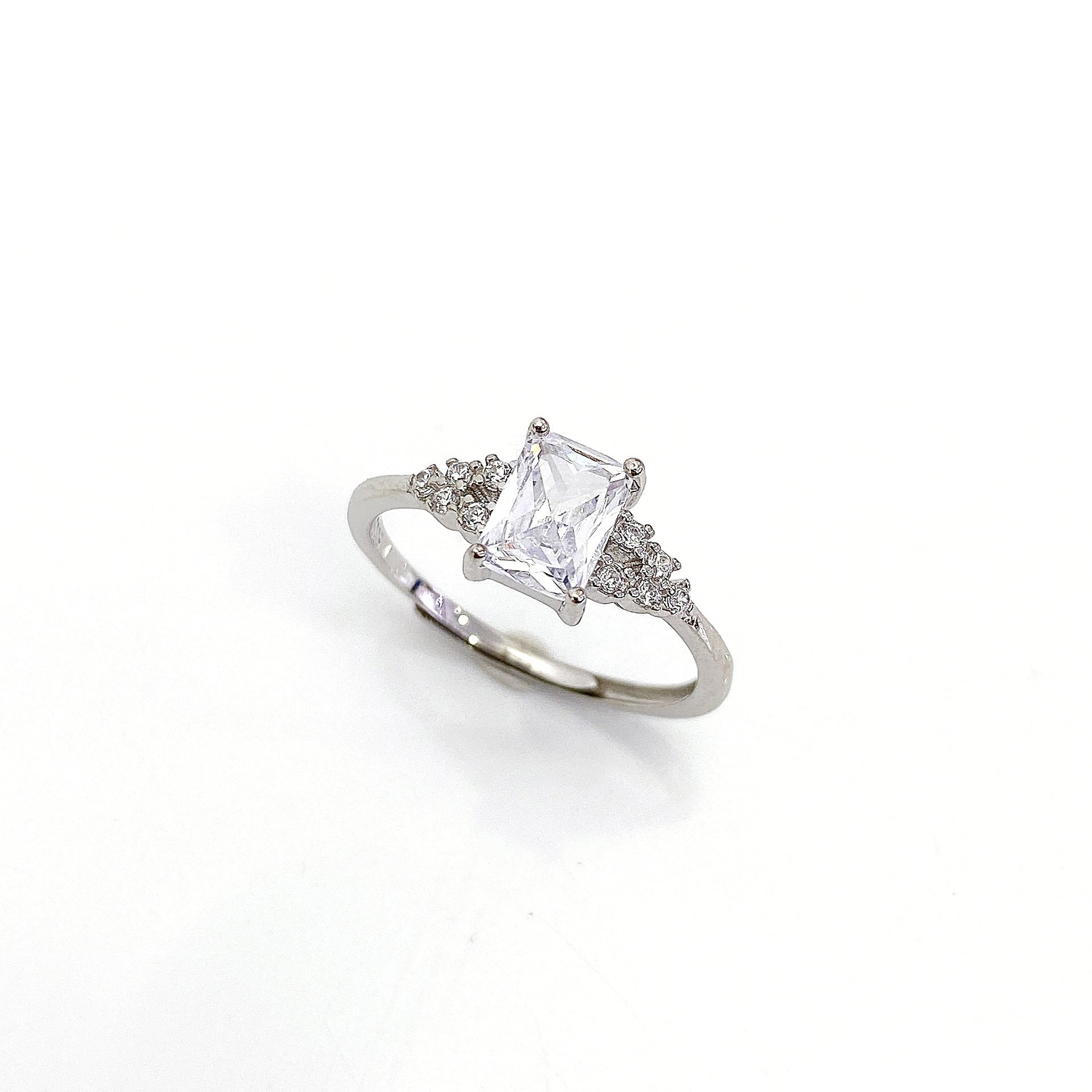 This Cathedral style Radiant Cut Zircon Silver Ring provides style and comfort with an adjustable opening and zircon-encrusted ring arm. Perfect for adding a touch of class to any outfit, the Radiant Cut Zircon ring is sure to be an eye-catching addition to any jewelry collection.