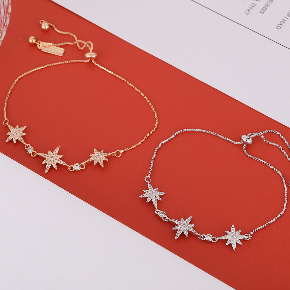 Three Zircon Octagonal Stars Silver Bracelet for Women