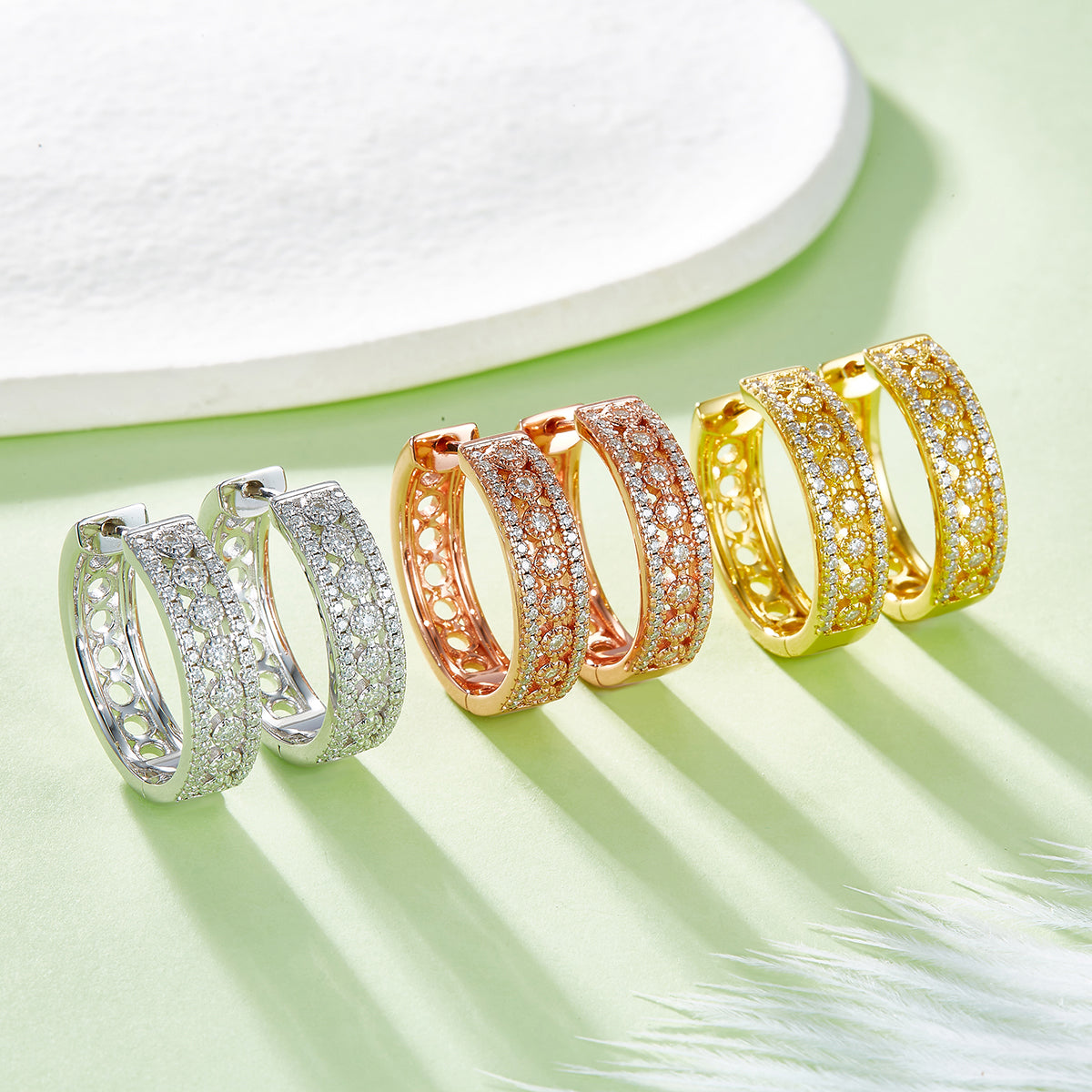 • Design: Three-row hoop silhouette for multi-faceted sparkle