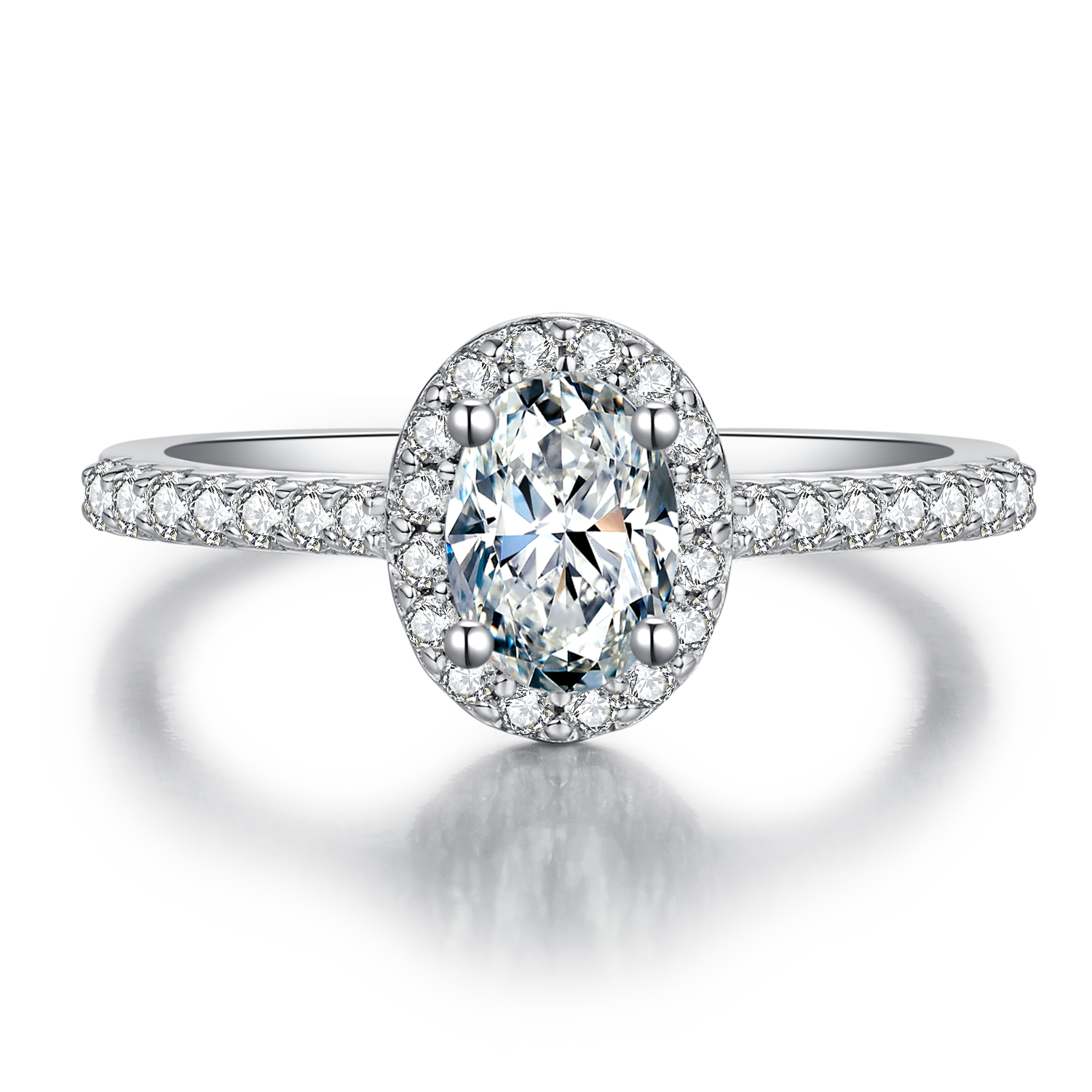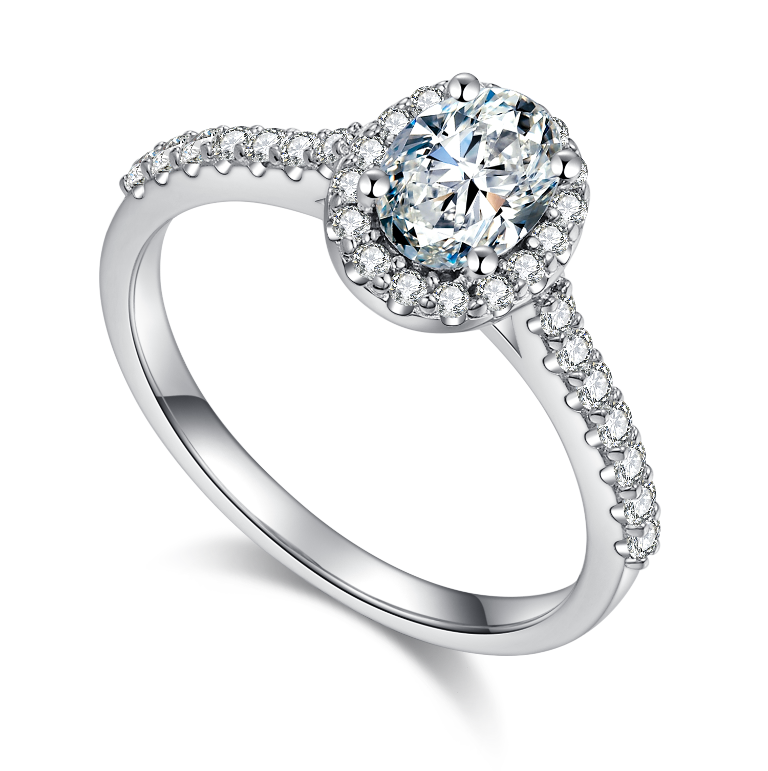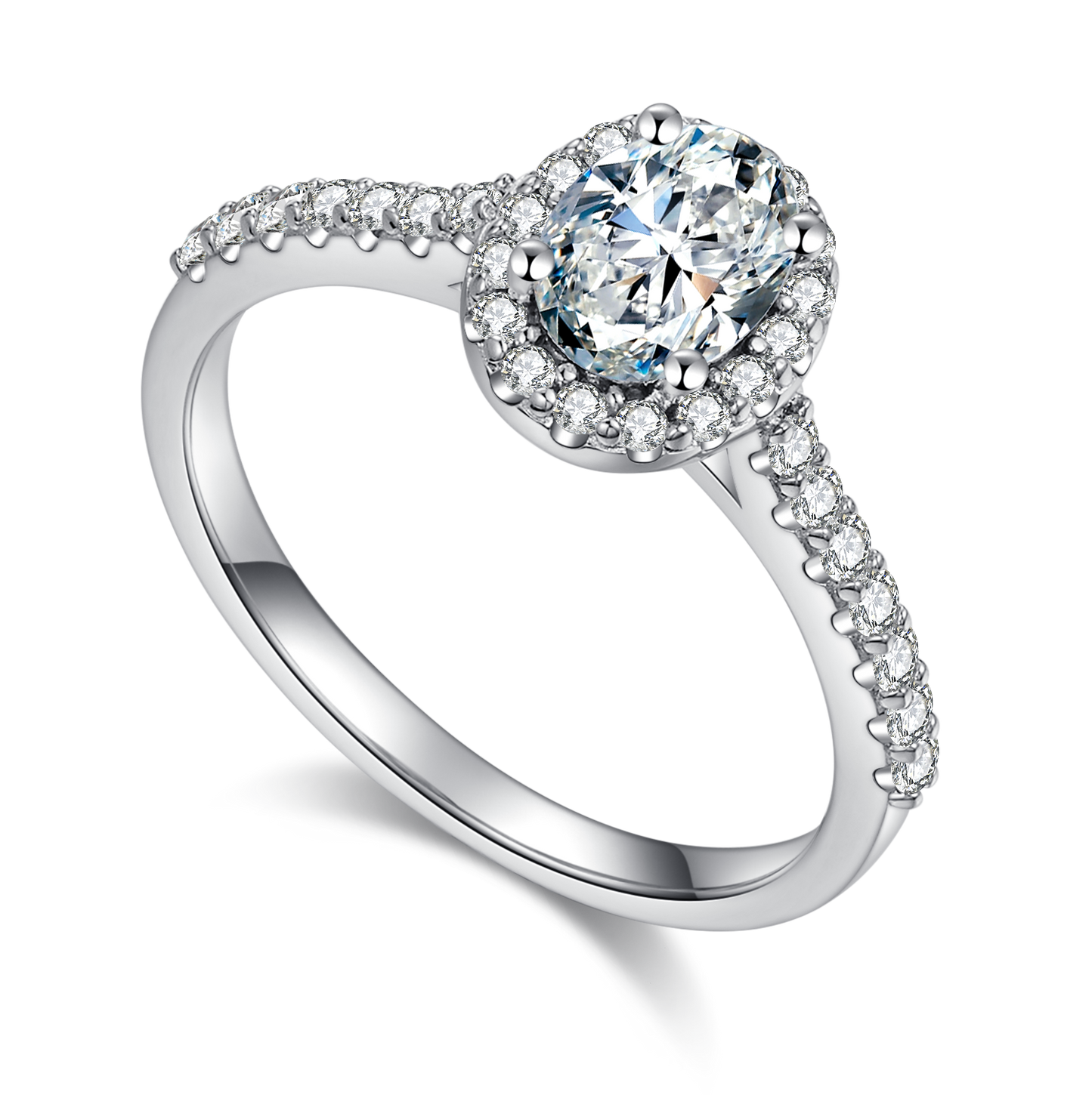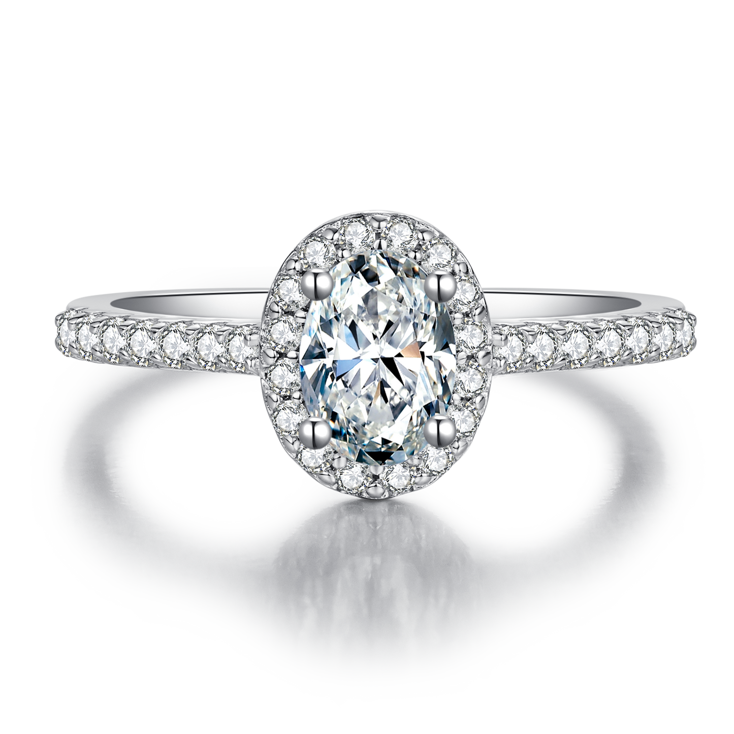 This ring uses a 1.0-carat Moissanite , with high colour and purity, allowing to shine in any occasion. At the same time, traditional oval-shape and halo design are also one of the characteristics of this ring, making it more gorgeous and elegance. It is not only exquisite in appearance but also of high quality, making your loved one more comfortable when wearing it.