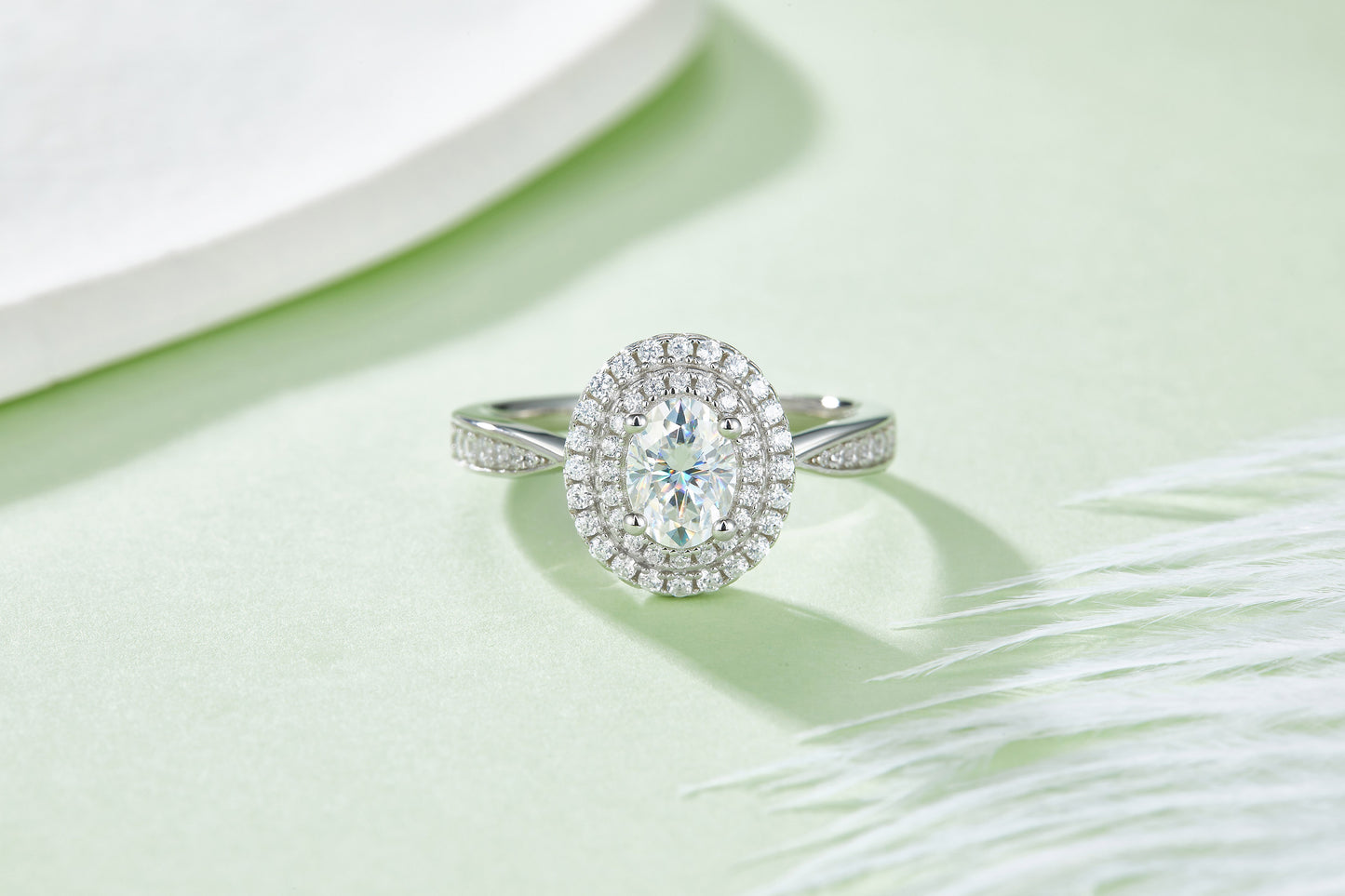 Luxurious Soleste Halo 1.0 Carat Oval Cut Moissanite Engagement Ring