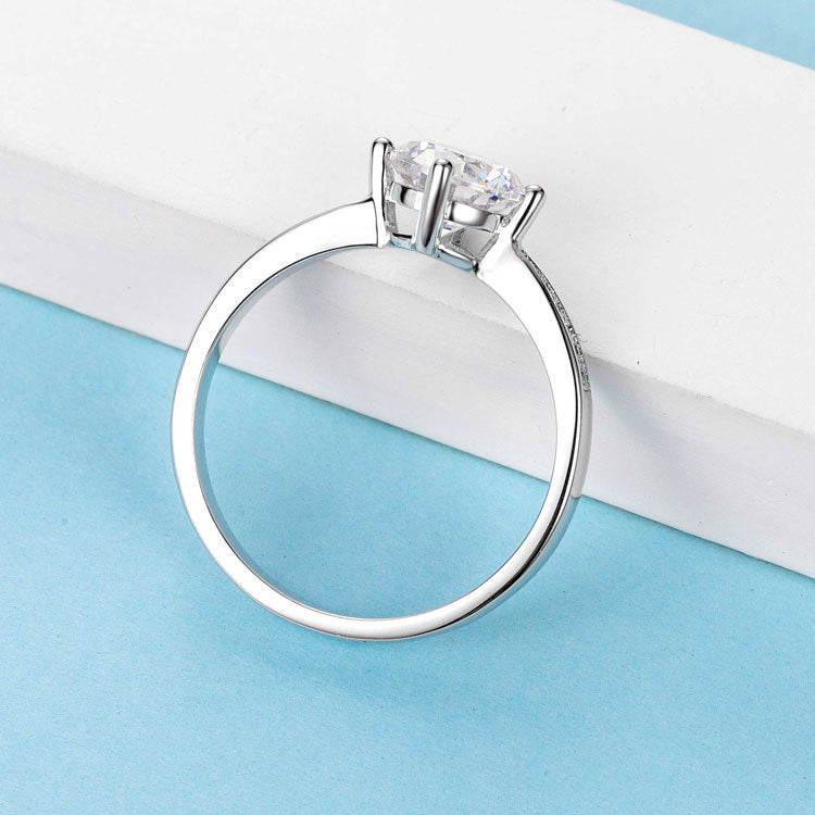 This Six Prongs 1.0-carat Moissanite ring is a classical design with meticulously crafted workmanship. The multiple small Moissanite ring band makes the entire ring more luxurious . Perfect for weddings, engagements, and anniversaries. This Moissanite ring features a classical and exquisite design that is sure your lover feels your eternity love.