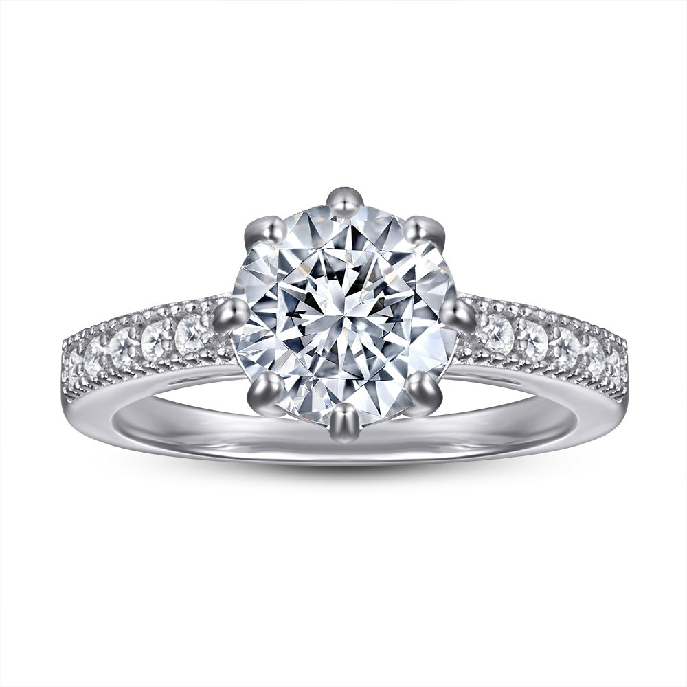 (1.0CT) Round Zircon Eight Prongs Cathedral Silver Ring for Women
