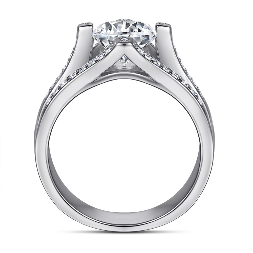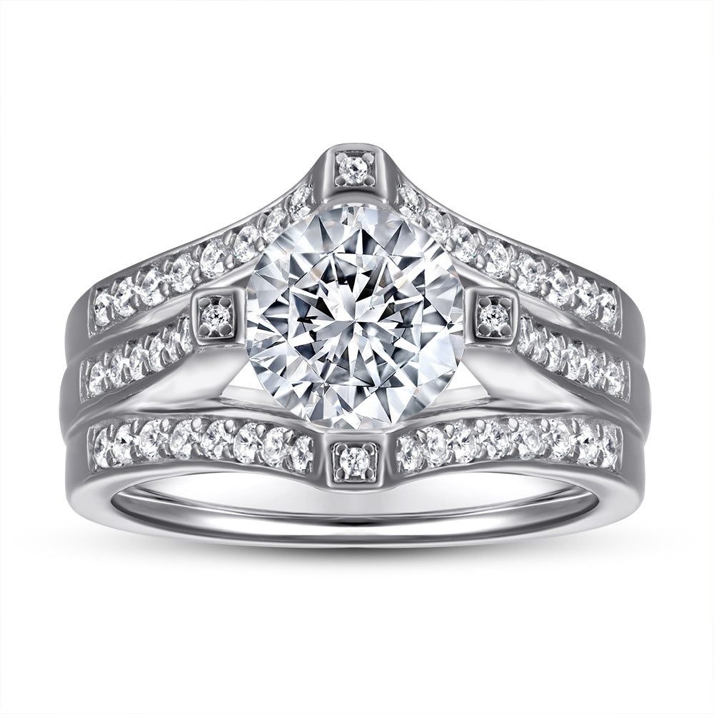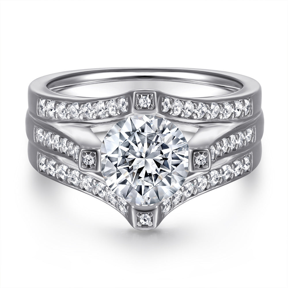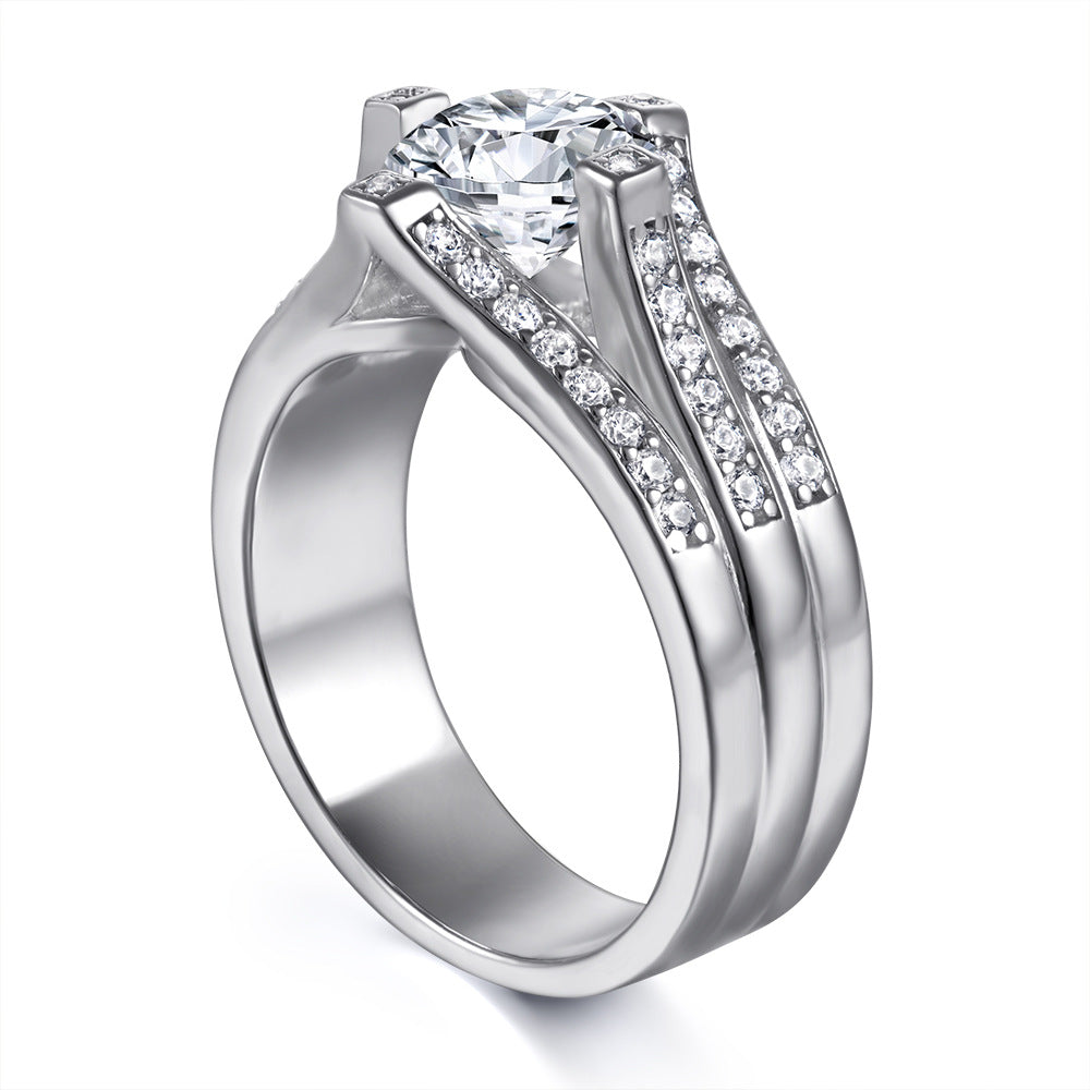 (1.0CT) Round Zircon Three Layer Modern Split Shank Silver Ring for Women