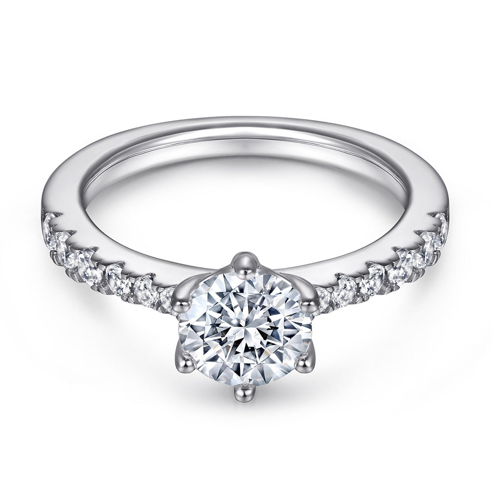 (1.0CT) Six Prongs Round Zircon Solitaire Silver Ring for Women