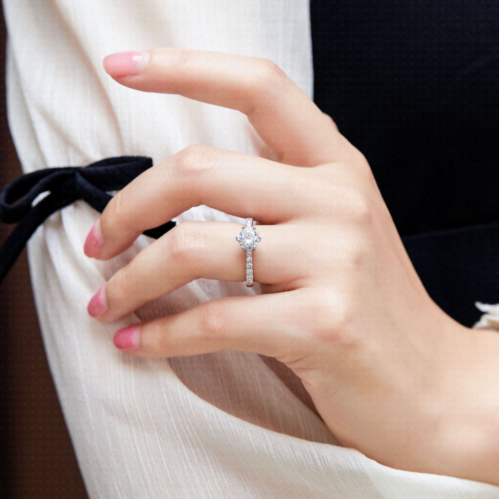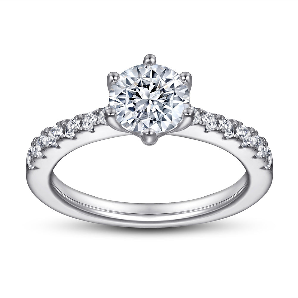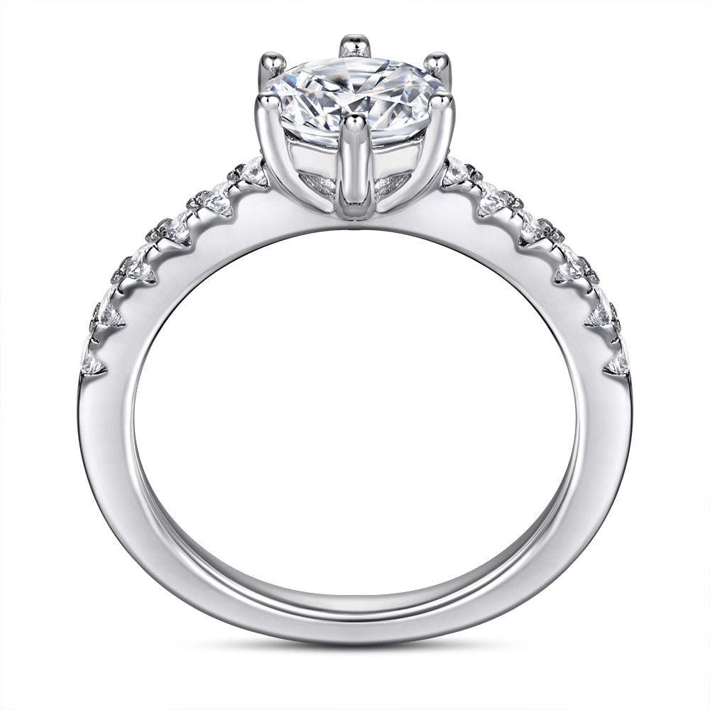This 1.0CT Six Prongs Round Zircon Solitaire Silver Ring for Women offers exceptional quality and sparkle with a 1.0CT round zircon with 6 prong design and decorative small zircons along the ring arms. This timeless design is perfect for special occasions or everyday wear.