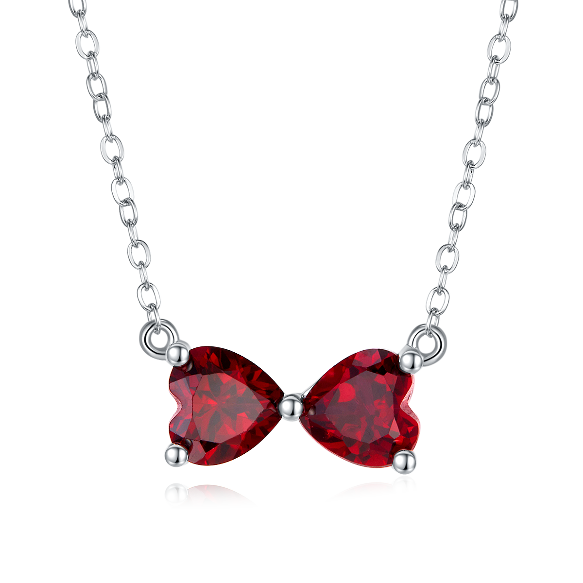 Elevate your jewelry collection with this stunning 1.6 Carat Double Heart Shaped Lab Created Ruby Bow Necklace. Crafted with meticulous attention to detail, this exquisite piece is designed to capture the essence of love and beauty.