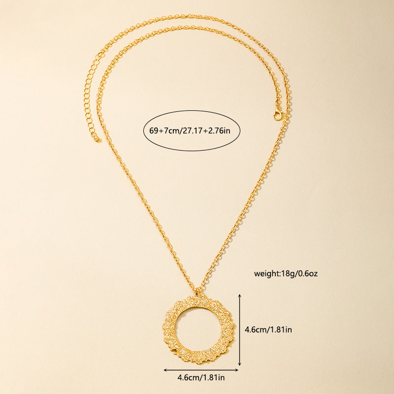 Fashionable European and American Versatile Daily Hip-Hop Metal Round Lace Pendant Women's Long Necklace Sweater Chain by Planderful delivers a stunning accessory that enhances your outfit with style and elegance for any occasion.