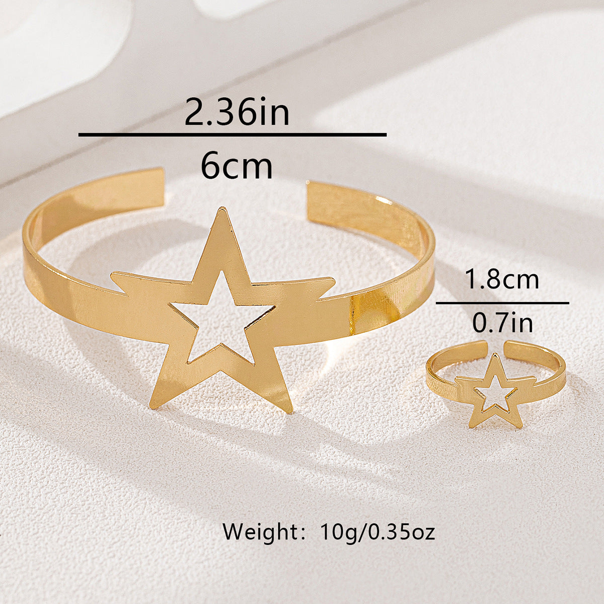 Crafted from high-quality metal, the bracelet and ring feature a stunning pentagram design that symbolizes harmony and unity. The unique hollow structure not only showcases its elegant form but also adds a touch of modern sophistication to any outfit.