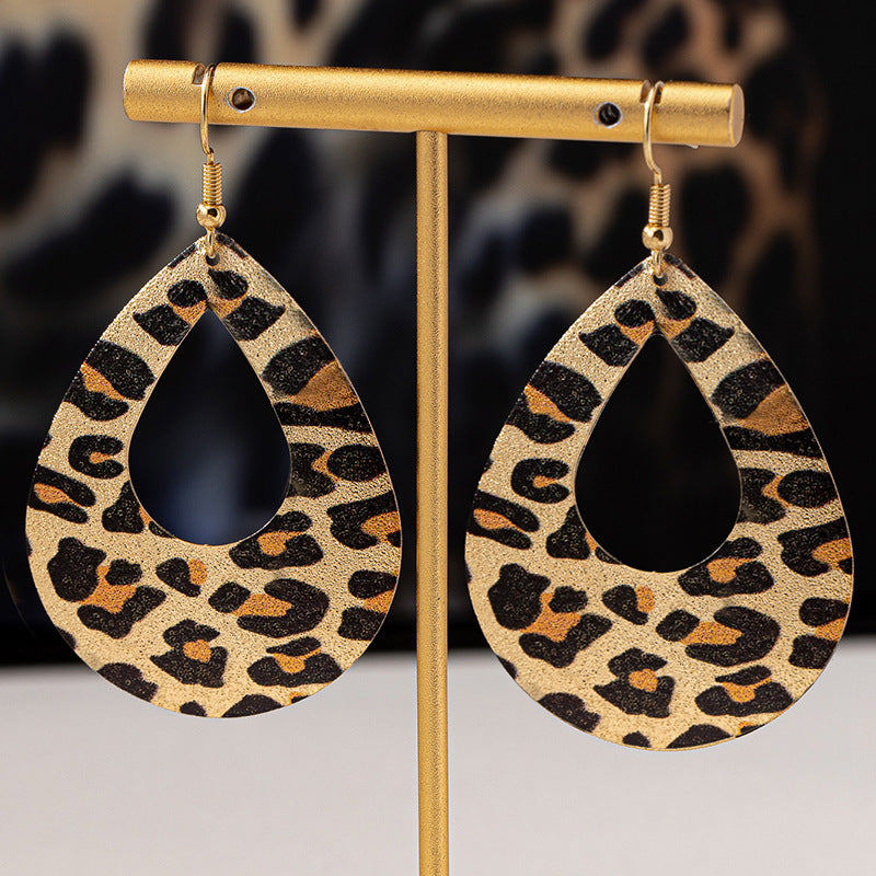 European and American Fashion Personality Temperament High-End Metal Geometry Water Drop-Shaped Hollow Leopard Print Women's Earrings by Planderful delivers a stunning touch of elegance and sophistication for any fashion-forward individual. These exquisite fashion jewelry earrings are the perfect accessory for elevating your outfit and showcasing your unique style.