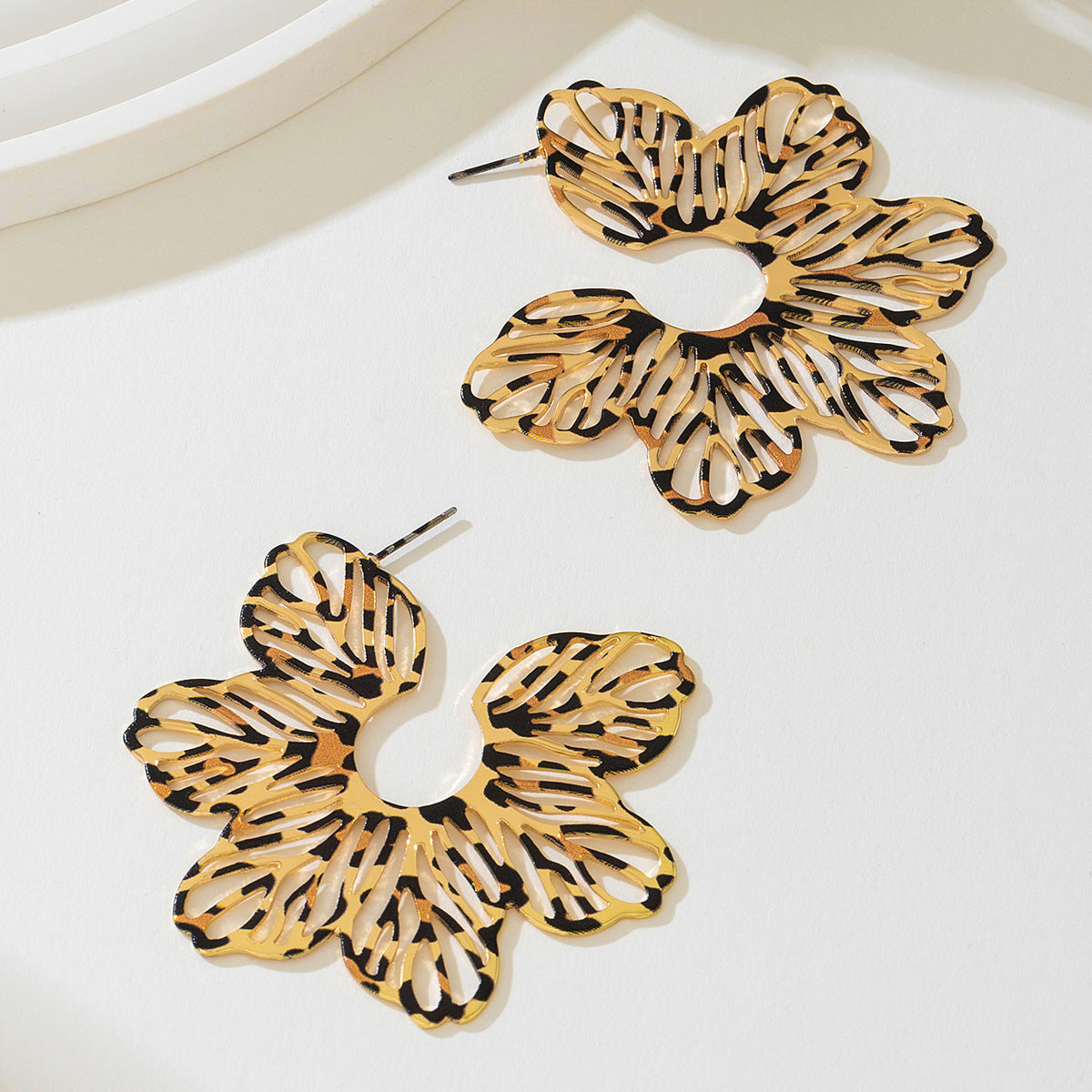 The fashionable European and American exaggerated personality chic metal hollow leopard print flower leaf ring women's earrings by Planderful delivers a striking style statement for fashion-forward individuals. Perfectly crafted for those who want to elevate their accessory game, these earrings are sure to turn heads wherever you go.