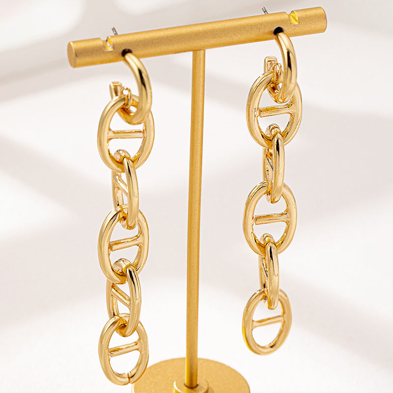 Fashionable Personality Simple High-End Temperament Metal Pig Nose Long Chain Women's Earrings by Planderful delivers a stunning touch of elegance and sophistication for your party wear. Perfectly designed to elevate your outfit, these earrings are a must-have accessory in any fashionista's collection.
