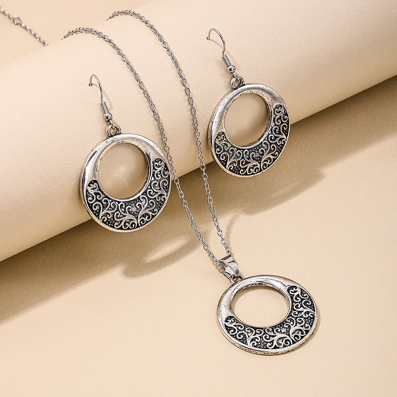 Indulge in the mesmerizing fusion of European, American, and Middle Eastern ethnic styles with our stunning jewelry set. The intricate metal ring pattern exudes elegance, while the tassel pendant adds a touch of playfulness to your ensemble. Perfect for elevating your everyday look or adding a statement piece to your evening attire.