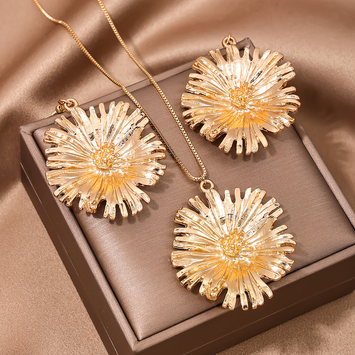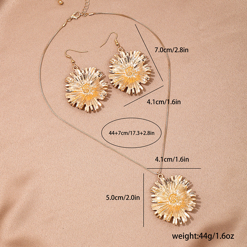 European Charm Metal Flower Jewelry Set with Oversized Pendants for Women