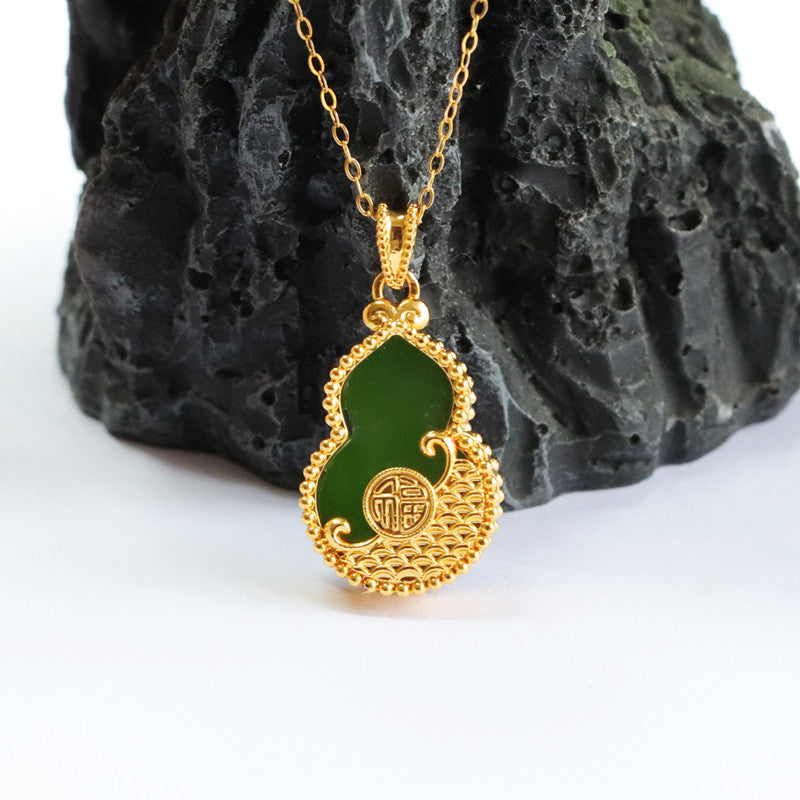 Jewelry Necklace with Hetian Jade Gourd Pendant and Jasper Blessing