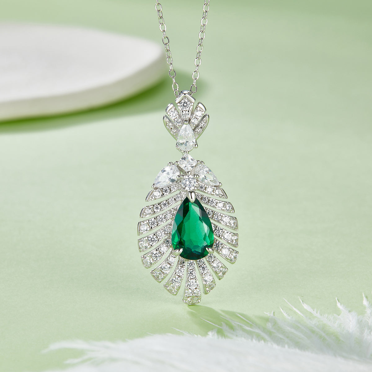 2.75 Carat Pear-Shaped Lab-Created Gemstone Pendant Necklace in S925 Silver with Platinum Leaf Design