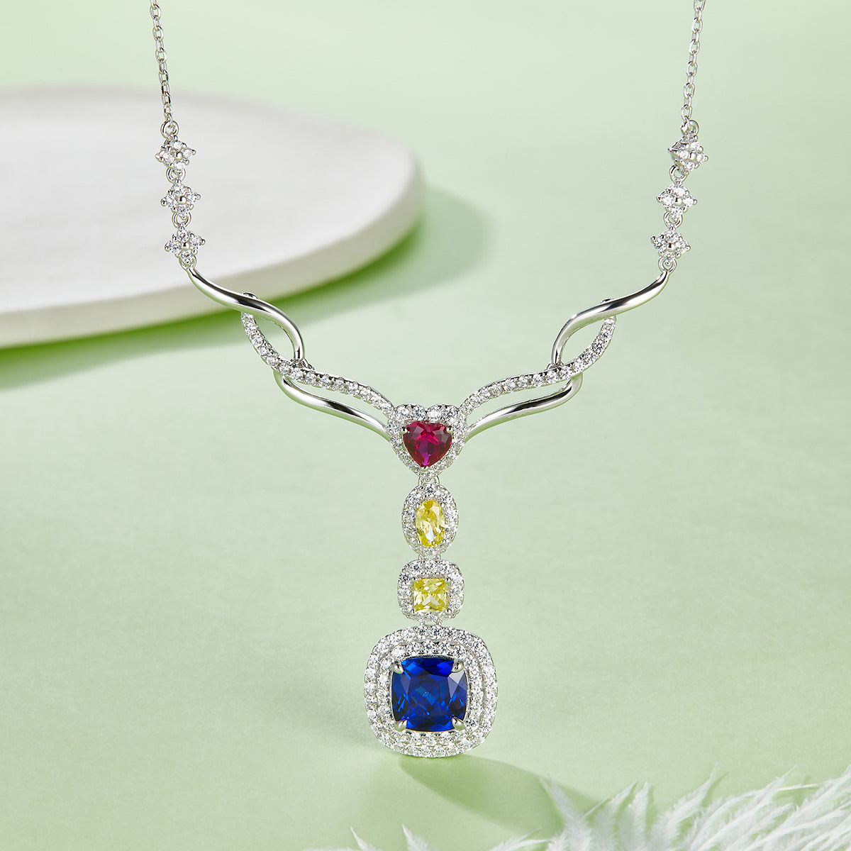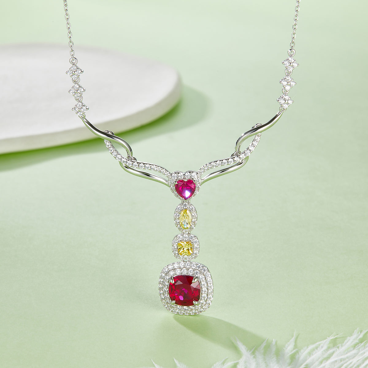 Elevate Your Elegance with Our 2.96 Carat Cushion Cut Lab Created Gemstone Necklace