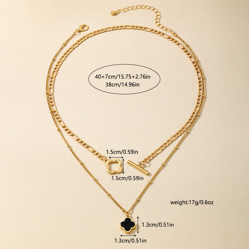 European and American Fashion Versatile Daily Classic Four-Leaf Clover Metal OT Buckle Flower Double Layer Stacked Women's Necklace by Planderful delivers a stunning accessory that enhances any outfit for a stylish, everyday look.