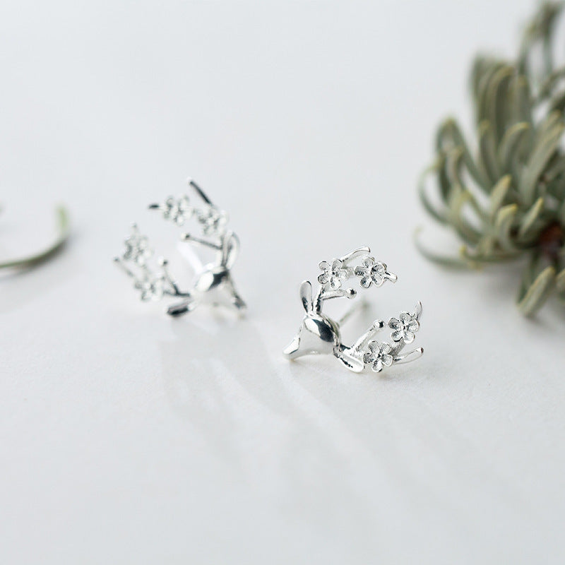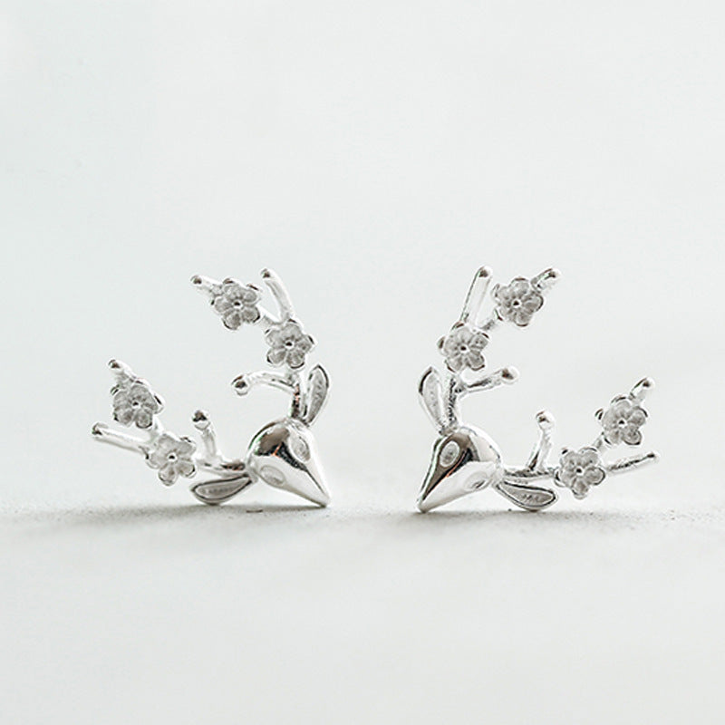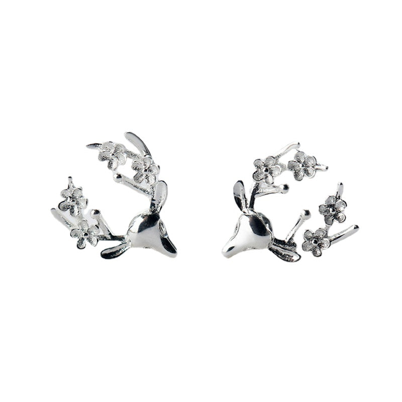 This beautiful Sika Deer Antler Silver Studs Earrings for Women is crafted from sterling silver and a deer antlers Delicately embellished with a plum blossom for a unique, natural aesthetic. It will show off your unique style with this chic and sophisticated earrings!