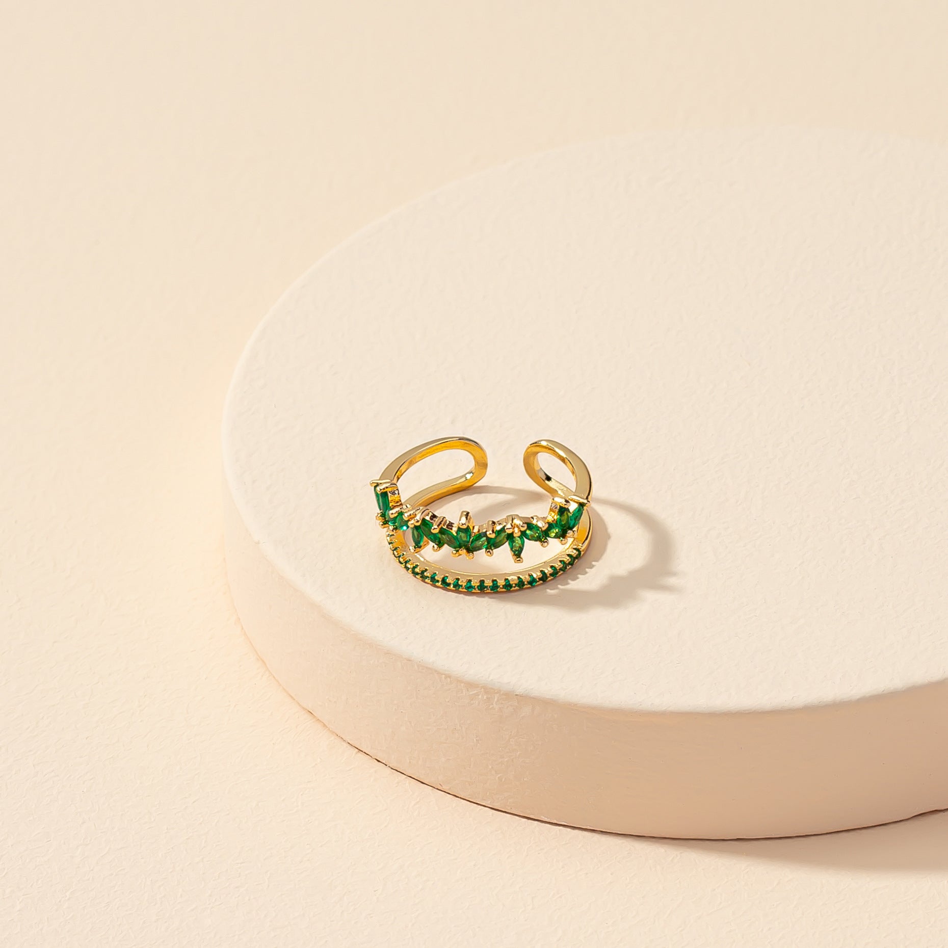 European and American Green Zirconium Copper Ring for Women's Handwear