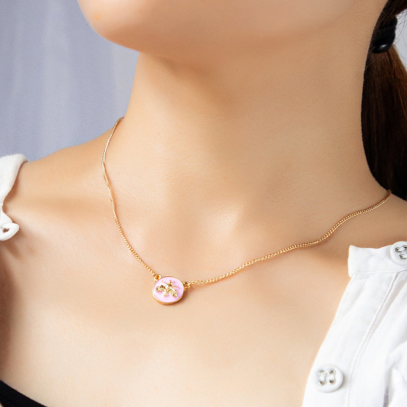 Unleash your inner fashionista with our popular new style drop glazed bee necklace, a trendy European and American cross-border design now available on Amazon. Elevate your look with this stunning neck ornament from our Jewelry Factory collection.