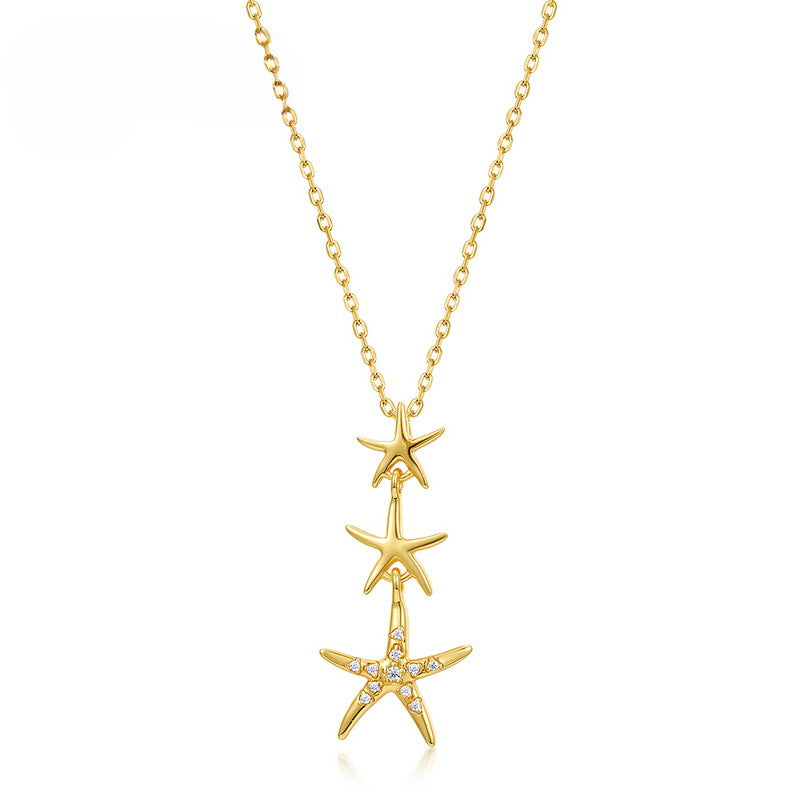 Three Starfish Pendant Zircon Sterling Silver Necklace