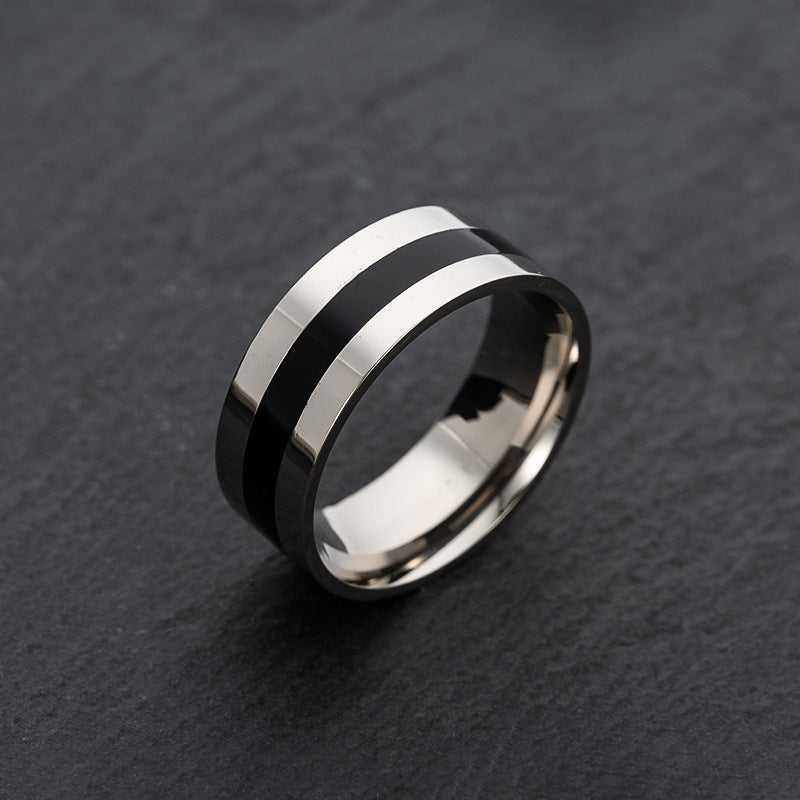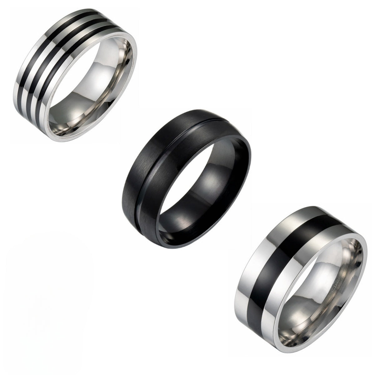 Stainless Steel Drip Oil Ring Set with Wide 8mm Band for Men