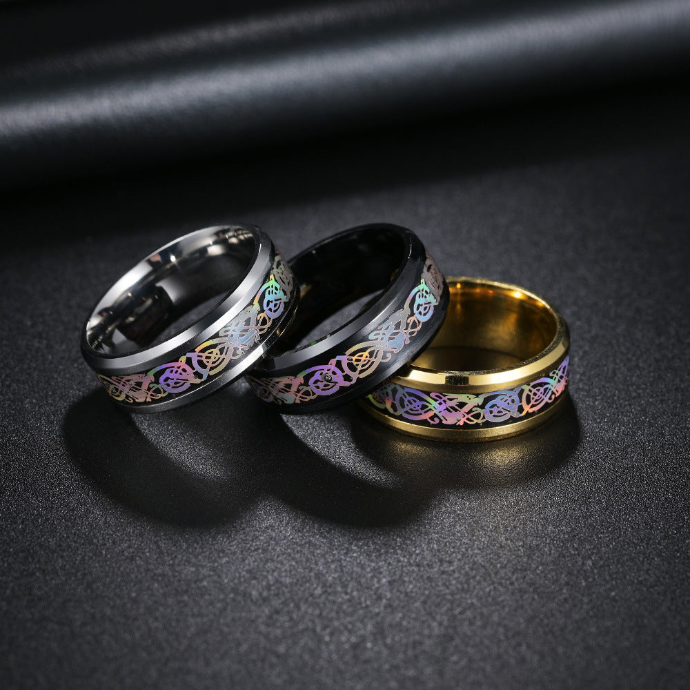 Dragon Pattern Titanium Steel Ring - Colorful Mythical Men's Jewelry