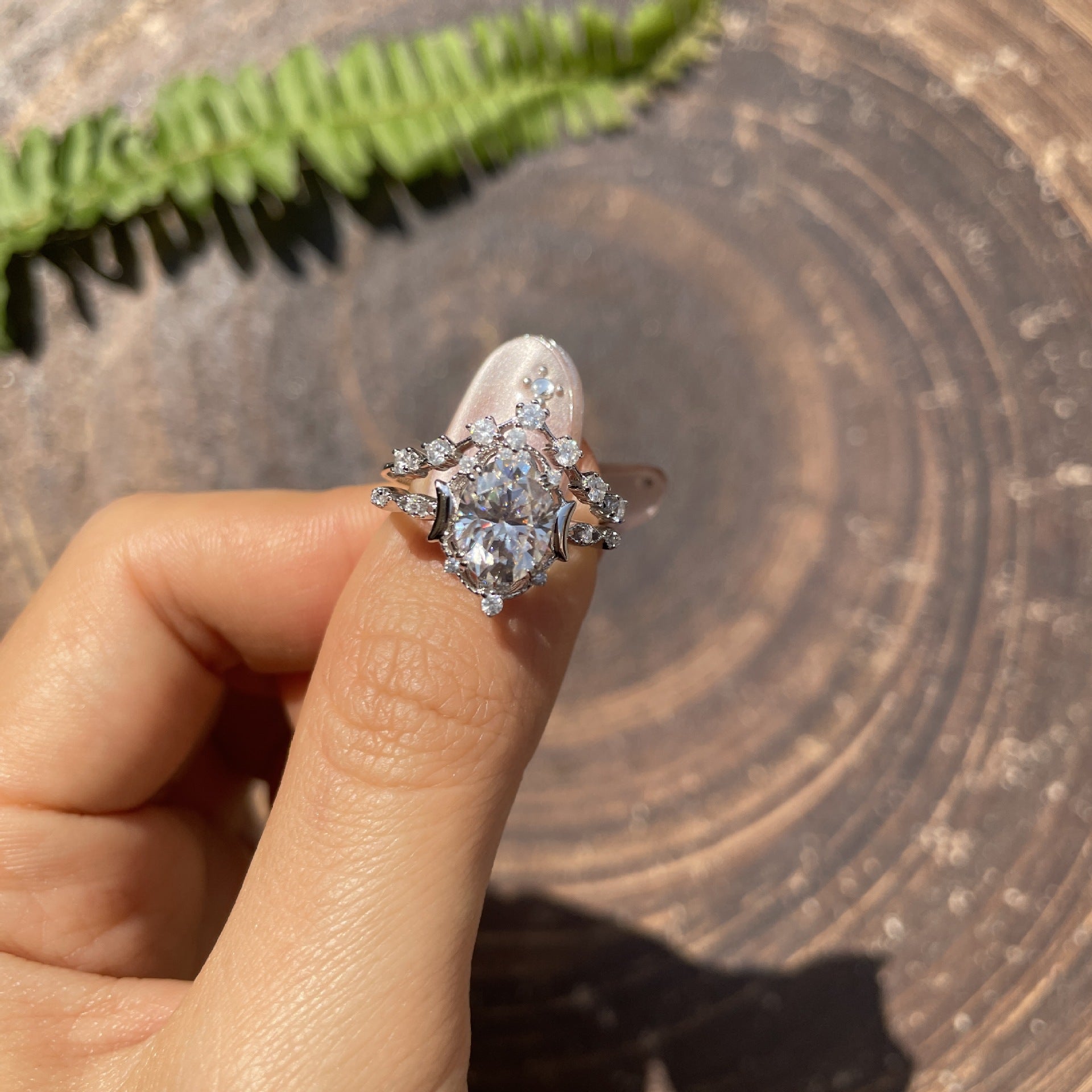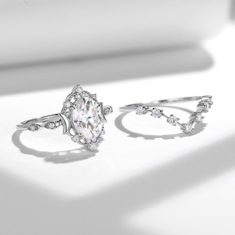Star Moon Series 2 Carat Moissanite Engagement Ring Set